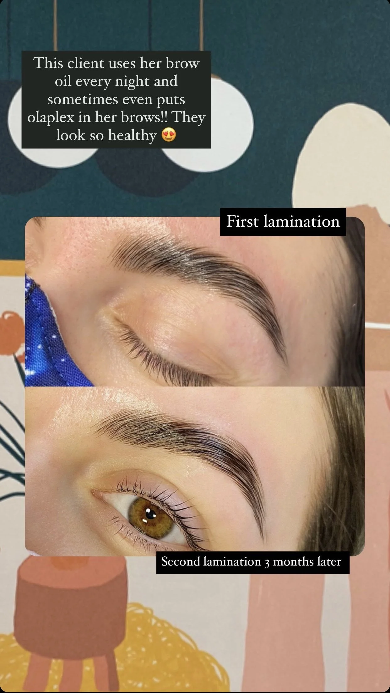 After-care is really easy. Leave ‘em alone for a full day, then tend to your hair with nourishing oil and a spoolie!(If you can’t oil up your brows and brush them at least every night, though, a brow lami is NOT. FOR. YOU!) I use castor oil, jojoba oil, grapeseed oil, rosehip oil… really whatever oil is closest to me. I also sometimes use Egyptian Magic or Olaplex! If my brows feel dry, I tend to them then and there. But bare minimum, NIGHTLY care is required lest you wanna have crusty, brittle brows.